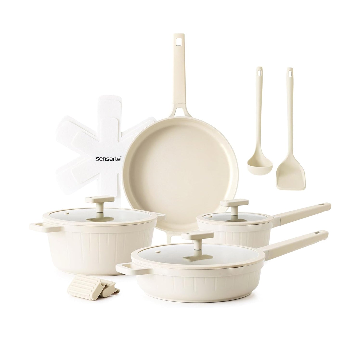 Sensarte Duramax Pots and Pans Set Non stick, Non toxic Healthy Induction Cookware Sets, 14 Pcs Non Stick Kitchen Cooking Set with Frying Pans Set & Saucepan, PFOA PFOS Free, Black