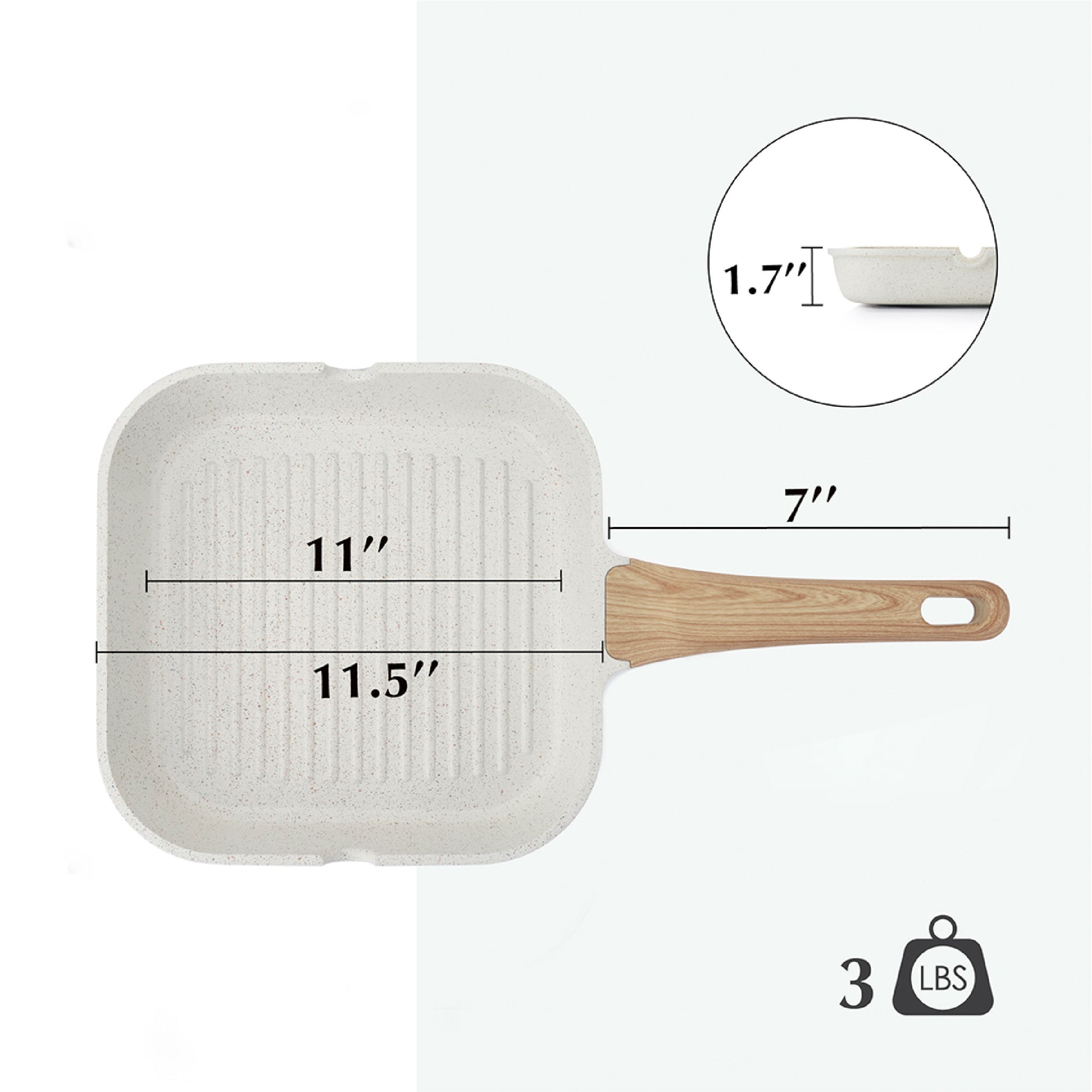 - STURDY & DURABLE: This heavy-duty and durable grill pan is made of die-cast aluminum, ensuring it won't deform for up to 10 years, while the Bakelite handle is comfortable to grip and stays cool while cooking.