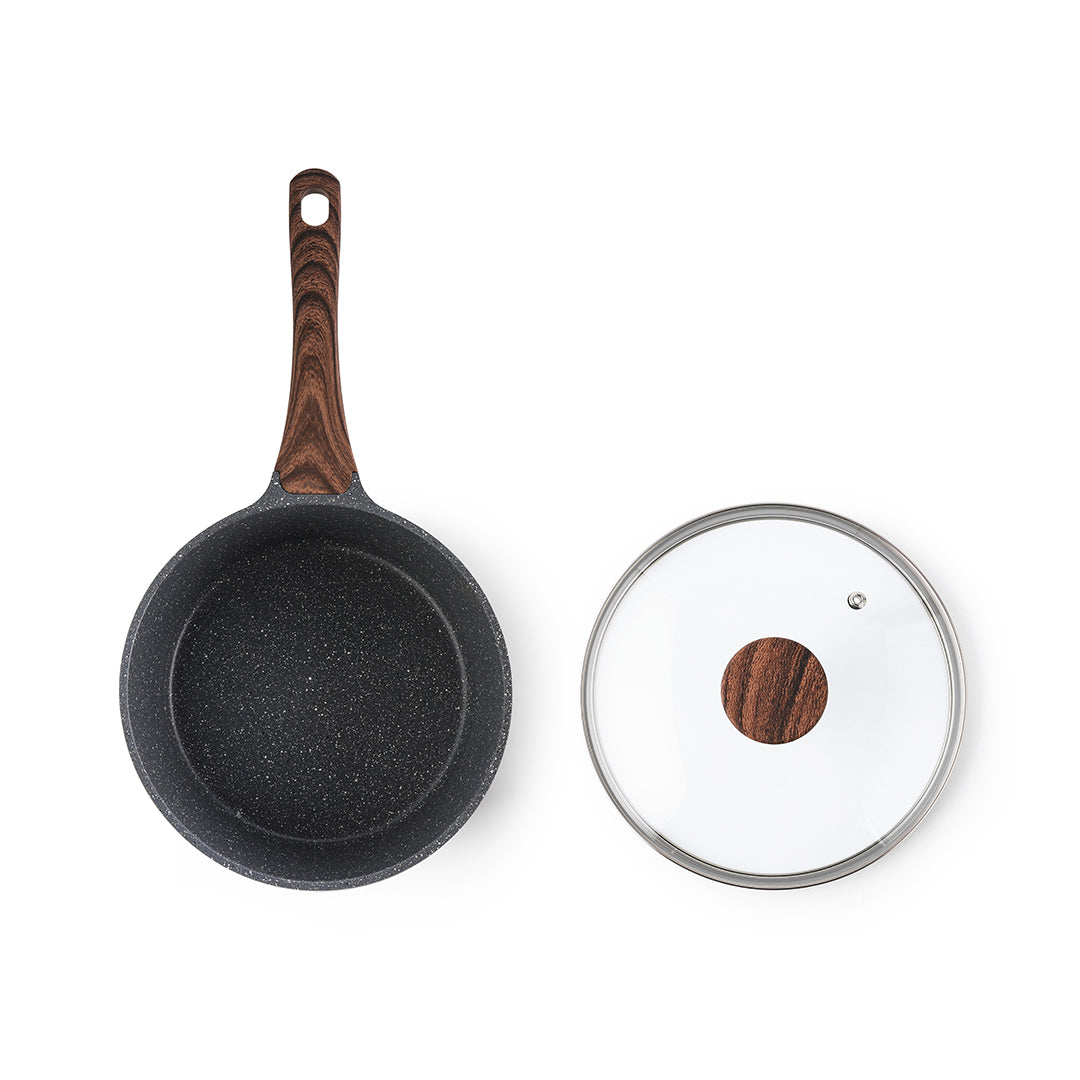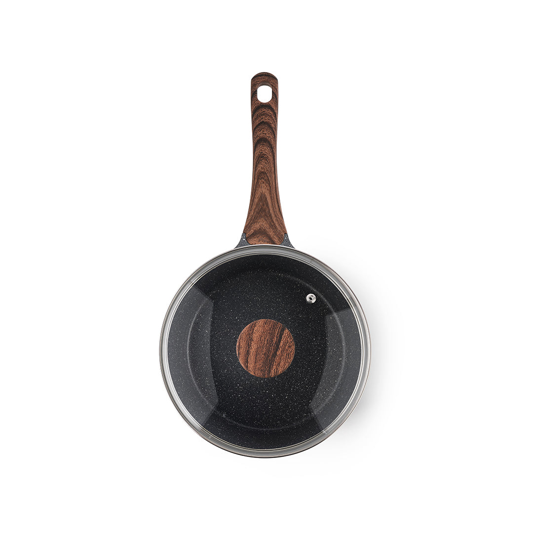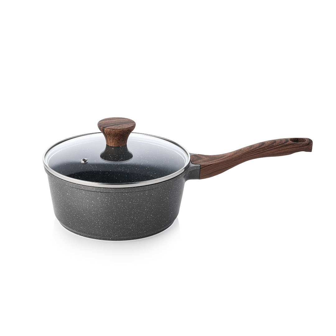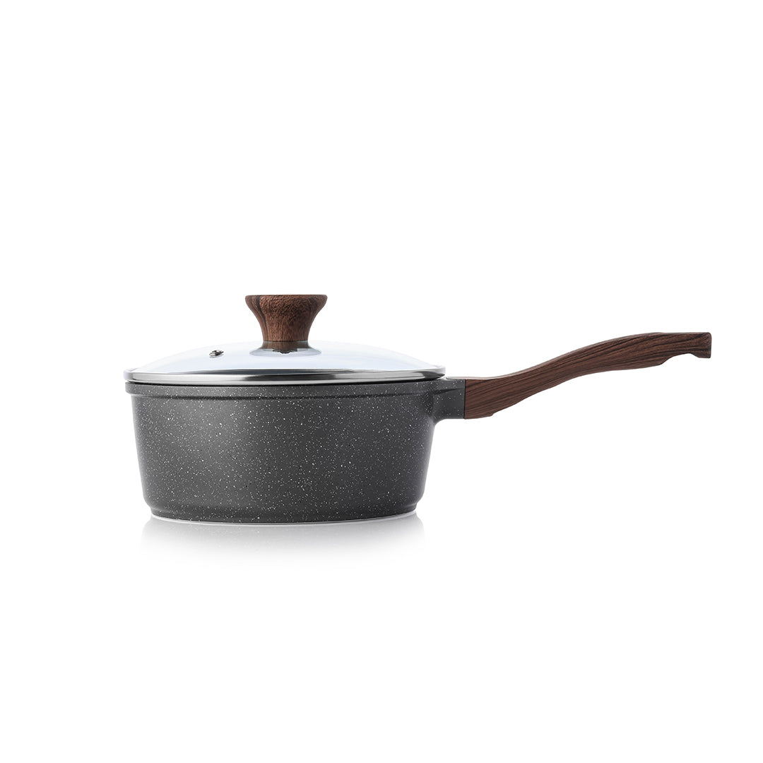 - Glass Lid & Stay-cool Handle - Long-lasting tempered glass lid makes this small induction saucepan with lid convenient to see the cooking status and limits splashes on your stove. Woodgrain bakelite handle is comfortable to grip and stays cool while cooking. Oven safe to 302°F.
